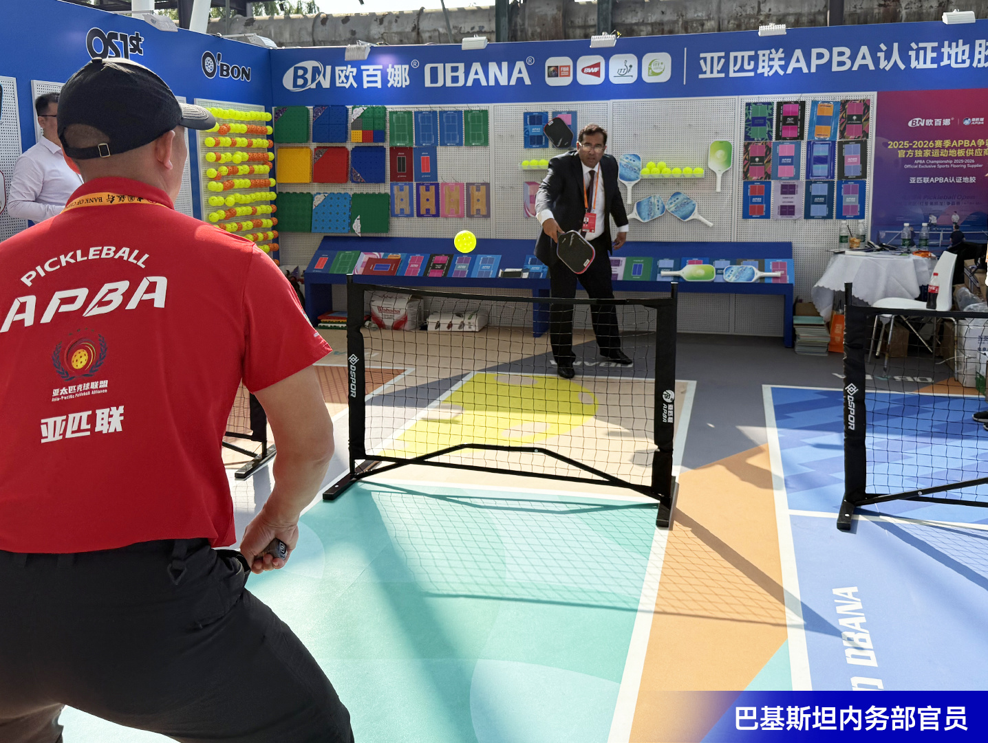 内务部官员、亚太匹克球联盟廖会长先后到访欧百娜展位,进行参观交流与指导,并现场体验了产品。欧百娜在匹克球运动的技术实